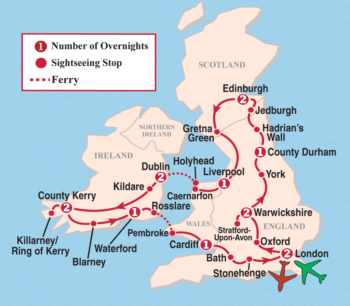 - Land Transportation in Britian & Ireland by deluxe, air-conditioned motor coach